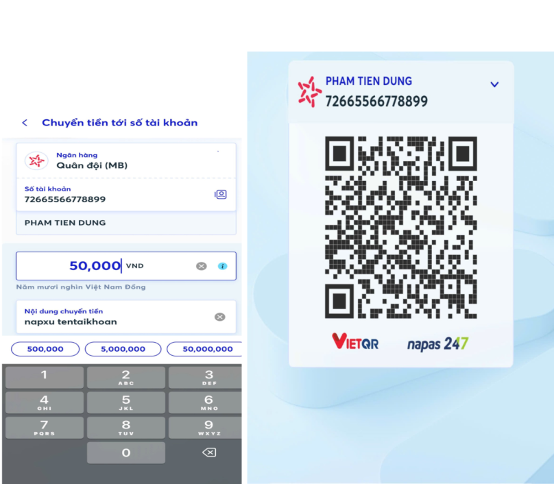 Tối thiểu 1 bill chuyển khoản là min 50.000 VNĐ trở lên