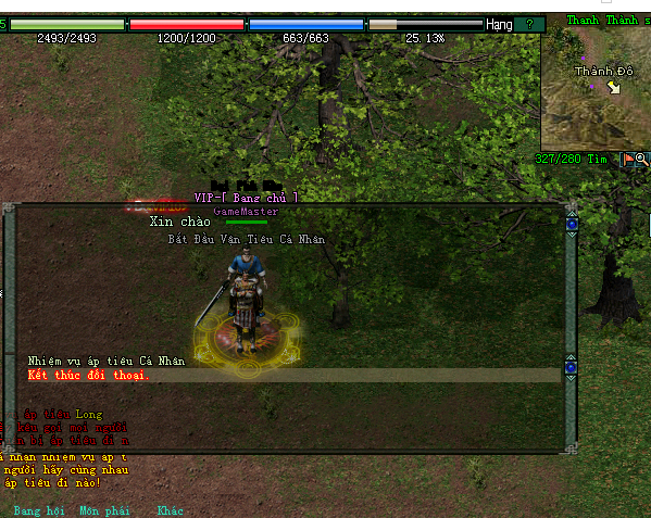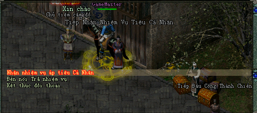 - Sau khi giao tiêu cho NPC Tiêu Sư thành công bạn hãy trả nhiệm vụ cho NPC Lục Tam Cân để nhận thưởng.